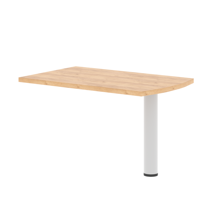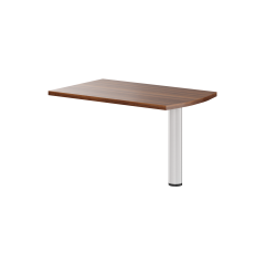 Приставка на опоре имеет практичную прямоугольную форму столешницы с одним округлым краем. Крепкая металлическая опора надежно удерживает всю конструкцию. Благодаря такому мебельному предмету легко увеличивается площадь стола, при этом приставлять данную модель можно к разным столам по мере надобности. Это удобно и функционально.