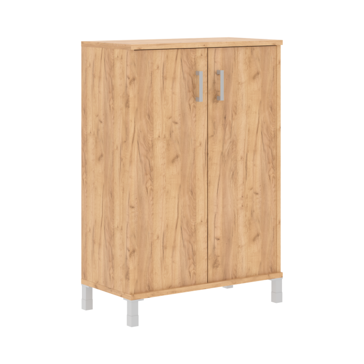 Каркасы шкафов выполнены из ЛДСП толщиной 25мм., кромка ПВХ т. 2мм. Задняя стенка из ХДФ т.4мм разрезная в паз. Внутренние полки из ЛДСП 18мм., кромка ПВХ т.0,8 мм. ЛДСП т 25мм., кромка ПВХ т. 2 с фасадной стороны, кромка ПВХ т. 0,8 с трех сторон. В упаковке один горизонтальный щит, который можно устанавливать вверху или внизу изделия. Опора регулируемая, цвет алюминий. Дверь вкладная, из ЛДСП т. 18мм., кромка ПВХ т. 0,8мм. Ручка скоба, цвет алюминий.