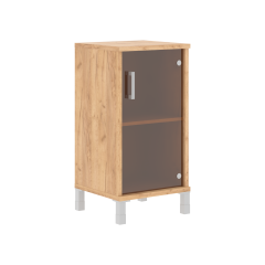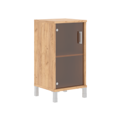 Каркасы шкафов выполнены из ЛДСП толщиной 25мм., кромка ПВХ т. 2мм. Задняя стенка из ХДФ т.4мм разрезная в паз. Внутренние полки из ЛДСП 18мм., кромка ПВХ т.0,8 мм.Панель ЛДСП т 25мм., кромка ПВХ т. 2 с фасадной стороны, кромка ПВХ т. 0,8 с трех сторон. Опора регулируемая, цвет алюминий. Стекло -тонированное в массе, бронза. Ручка скоба, цвет алюминий. Двери вкладные.