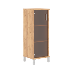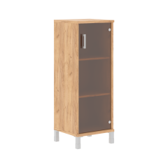 Каркасы шкафов выполнены из ЛДСП толщиной 25мм., кромка ПВХ т. 2мм. Задняя стенка из ХДФ т.4мм разрезная в паз. Внутренние полки из ЛДСП 18мм., кромка ПВХ т.0,8 мм. ЛДСП т 25мм., кромка ПВХ т. 2 с фасадной стороны, кромка ПВХ т. 0,8 с трех сторон. В упаковке один горизонтальный щит, который можно устанавливать вверху или внизу изделия. Опора регулируемая, цвет алюминий. Стекло -тонированное в массе, бронза. Ручка скоба, цвет алюминий. Двери вкладные.