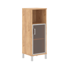 Каркасы шкафов выполнены из ЛДСП толщиной 25мм., кромка ПВХ т. 2мм. Задняя стенка из ХДФ т.4мм разрезная в паз. Внутренние полки из ЛДСП 18мм., кромка ПВХ т.0,8 мм. ЛДСП т 25мм., кромка ПВХ т. 2 с фасадной стороны, кромка ПВХ т. 0,8 с трех сторон. В упаковке один горизонтальный щит, который можно устанавливать вверху или внизу изделия. Опора регулируемая, цвет алюминий. Стеклянная дверь в алюминиевой рамке, стекло - тонированное пленкой, бронза. Ручка скоба, цвет алюминий. Двери вкладные