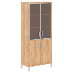 Каркасы шкафов выполнены из ЛДСП толщиной 25мм., кромка ПВХ т. 2мм. Задняя стенка из ХДФ т.4мм разрезная в паз. Внутренние полки из ЛДСП 18мм., кромка ПВХ т.0,8 мм. ЛДСП т 25мм., кромка ПВХ т. 2 с фасадной стороны, кромка ПВХ т. 0,8 с трех сторон. В упаковке один горизонтальный щит, который можно устанавливать вверху или внизу изделия. Опора регулируемая, цвет алюминий. Стеклянная дверь в алюминиевой рамке, стекло - тонированное пленкой, бронза. Ручка скоба, цвет алюминий. Двери вкладные.