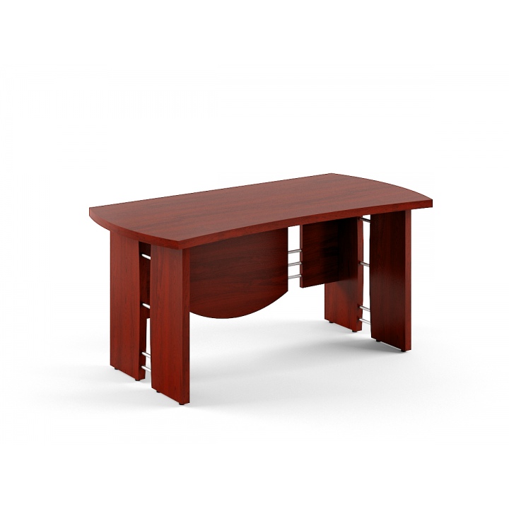 Стол рабочий с элегантно изогнутой формой столешницы смотрится стильно и неординарно. Высокое качество материалов, из которых он изготовлен, обеспечивает его безупречную долгую службу. Декоративные алюминиевые трубки придают модели современный оригинальный вид. Стол выглядит солидно и респектабельно, работать за ним комфортно и приятно.