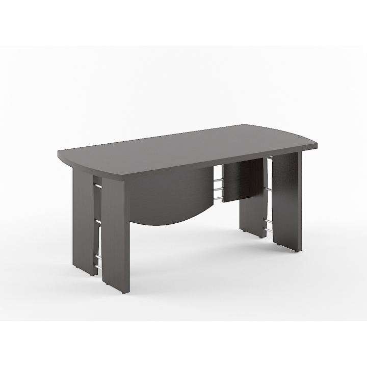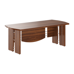 Стол рабочий смотрится стильно и респектабельно. Просторная столешница позволяет размещать на ней много нужных бумаг, документов, канцелярских принадлежностей. За ним удобно и приятно работать. Элегантная конструкция модели украшена декоративными алюминиевыми трубками и выглядит современно и презентабельно.